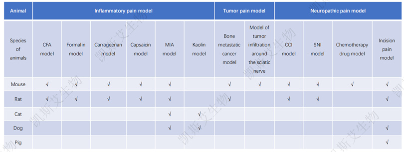 | chronic pain | Disease duration>3 months, persistent or recurrent pain, easily accompanied by anxiety/depression | CCI、 Bone cancer pain, chronic inflammation model, chemotherapy induced neuropathic pain | |