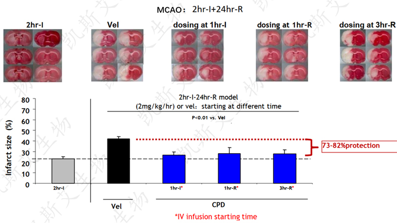CPD administration can effectively protect brain tissue and reduce infarction area 1 hour after ischemia, 1 hour after reperfusion, and 3 hours after reperfusion.