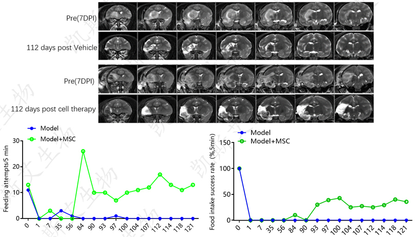 On the 8th day of the NHP permanent ischemic cerebral infarction model, after 16 weeks of MSC treatment, the behavior improved significantly