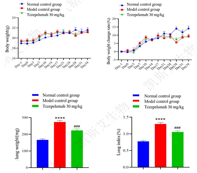 The lung weight of the model control group animals was significantly higher than that of the normal control group animals. After treatment with Tezepelumab, the lung weight was significantly reduced.