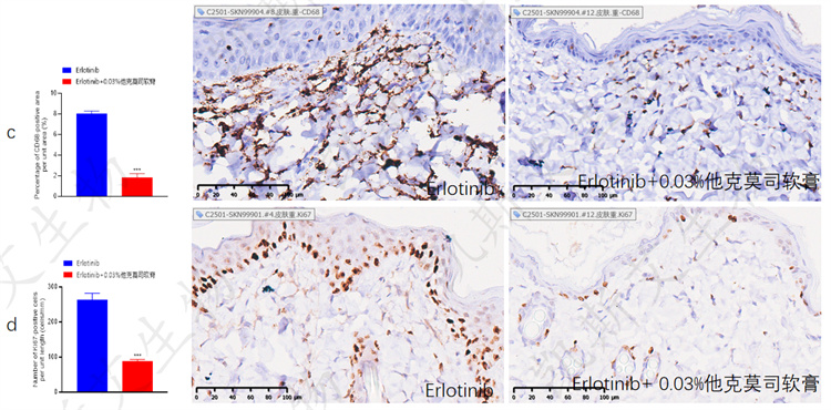 • a-组织病理检测表皮和真皮厚度、b-组织病理检测表皮和真皮内炎症、c-IHC-CD68、d-IHC-ki67