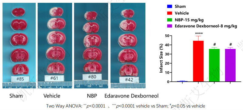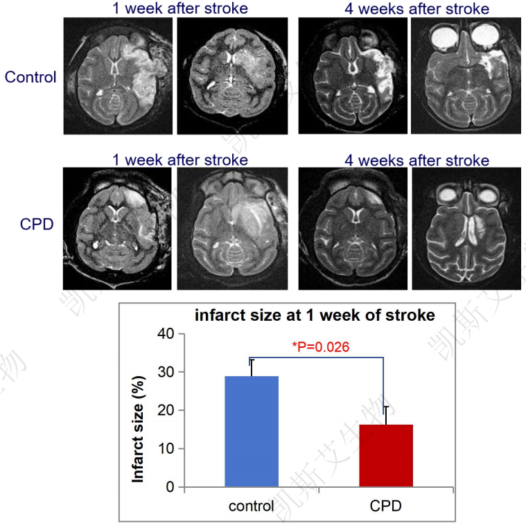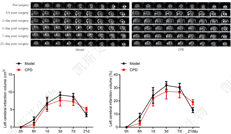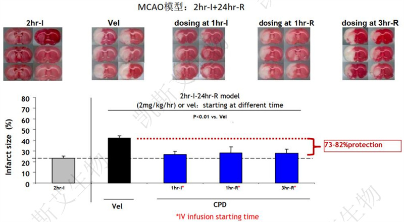 CPD在缺血后1h、再灌注后1h,3h给药均能够有效保护脑组织,减少梗死面积。