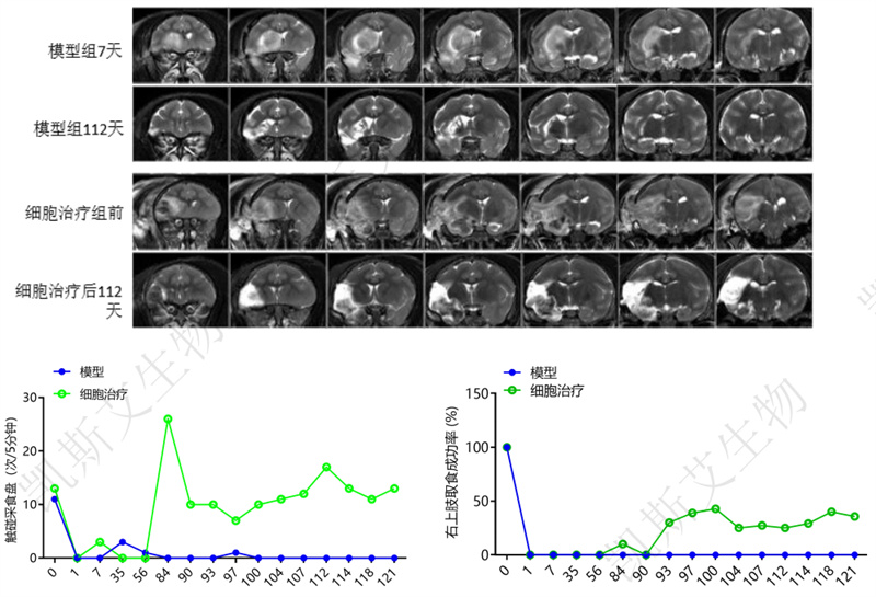 NHP永久性缺血性脑梗死模型第8天MSC治疗16周,行为学明显改善