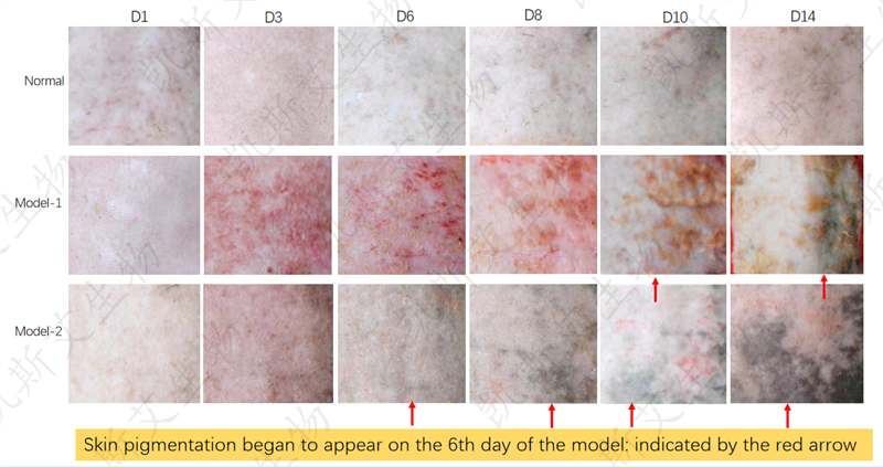 Advantages: Its skin structure and melanin metabolism are very similar to those of humans! It is easier to simulate pigmentation (sunspots) caused by human exposure to ultraviolet radiation.
