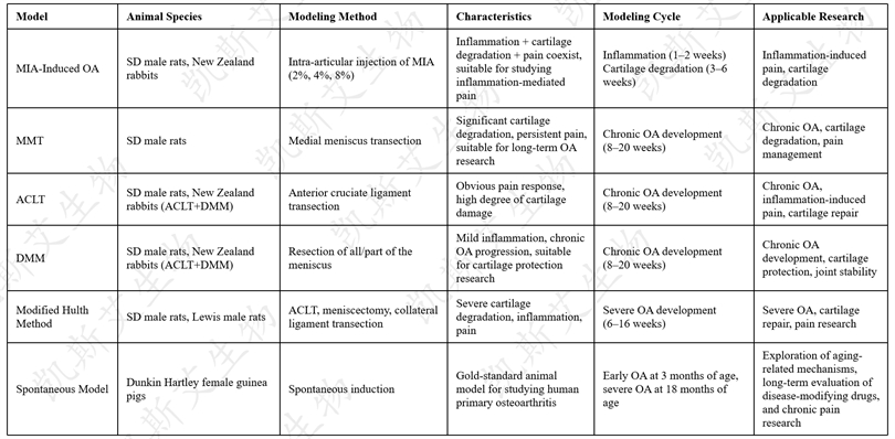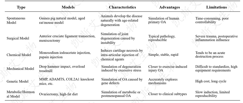 Osteoarthritis models can be roughly divided into two categories: spontaneous models and induced models.