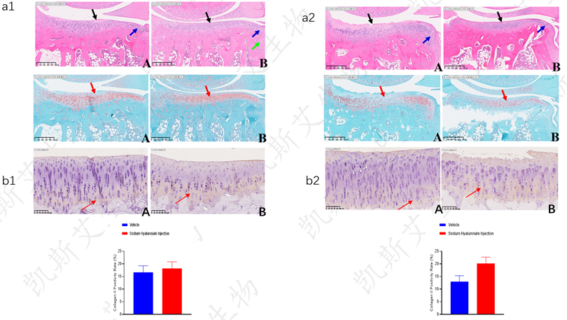 Moderate spontaneous arthritis: a2 histopathological examination, b2 Collagen II representative image