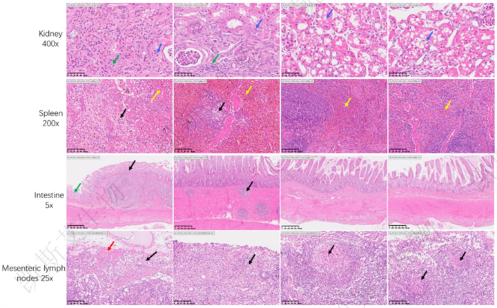 图5:肾脏、脾脏、肠道、肠系膜淋巴结HE病理染色分析